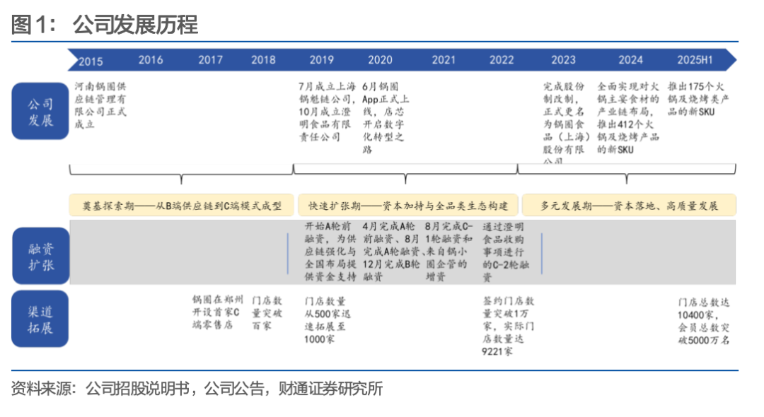 2015年公司成立,早期聚焦B端火锅食材供应,积累供应链管理与品控能力。2017年在郑州开设首家C端零售店,切入“在家吃火锅”消费场景。2018年门店数量突破百家。