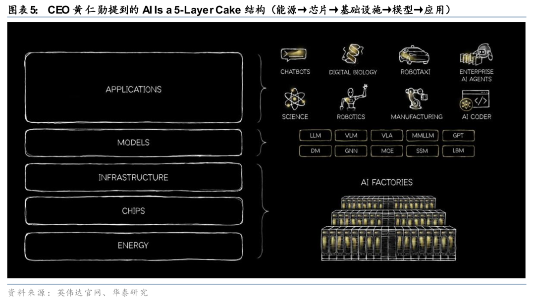英伟达将于3/16-19举办GTC 2026,其中CEO黄仁勋Keynote将于北京时间3/17 2:00-4:00AM举行。我们预计,本次大会的核心或在于AI推理上升为系统级基础设施,其中Rubin与Rubin Ultra构成平台底座,Feynman延续长期架构优势,CPX与LPU分别面向Prefill计算和超低延迟Decode,而CPO与光互连也或为本次焦点。我们同时重申两项趋势:2026年或成为Agentic AI的元年,CPO将迈入实质性落地阶段;近期英伟达整合Groq以及对Lumentum与Coherent合计约40亿美元投资亦印证未来趋势。此外,CEO黄仁勋在最新blog中提出AI的五层结构:能源→芯片→基础设施→模型 →应用,这一框架也与我们此前对AI Factory体系的判断基本一致。