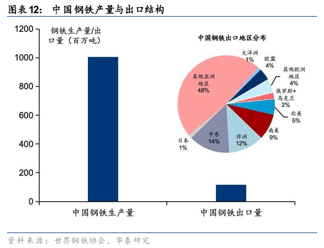基于钢铁生产高碳排放强度特性,CBAM(欧盟碳边境调节机制)于2026年1月1日正式起征有望成为冶金降碳需求放量拐点。CBAM对首批纳入规管的钢铁、电力、化肥、水泥、铝和氢六个工业部门的CO2、N2O及全氟碳化物排放征收碳关税。具体而言,欧盟境内的进口商需根据其进口产品的碳排放量购买相应数量的碳边境调节证书,每张证书对应1吨碳排放量,证书的价格参考EU ETS碳市场每周收盘平均值,若企业未按规定缴纳,需要在补缴之外额外缴纳100欧元/吨罚款。在全球钢铁贸易格局中,中国是最大的钢铁生产国和出口国,而欧盟则是最大的钢铁进口市场。根据世界钢铁协会数据,2024年中国钢铁产量达10.05亿吨,占全球总产量的53%(18.8亿吨),其中出口量1.17亿吨,位居全球第一;欧盟2024年钢铁进口量为0.428亿吨,中国出口欧盟/欧洲地区钢铁占中国总出口量约9%。我们测算,在碳价假设为100欧元/吨的情景下,碳成本将带动钢铁平均进口成本上升约14%,钢铁企业降碳需求有望加速释放。