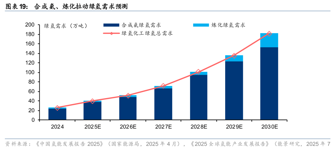 3. 绿氢化工:经济性和流程可行性带动商业化提速,2030年有望带动182万吨绿氢需求