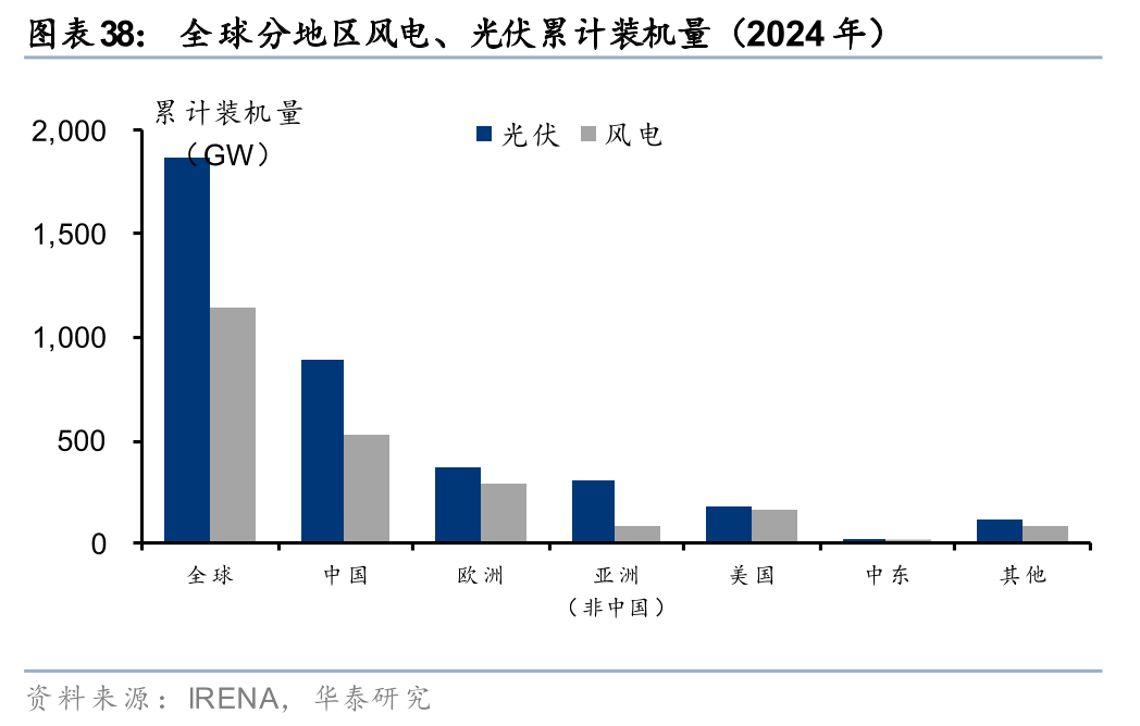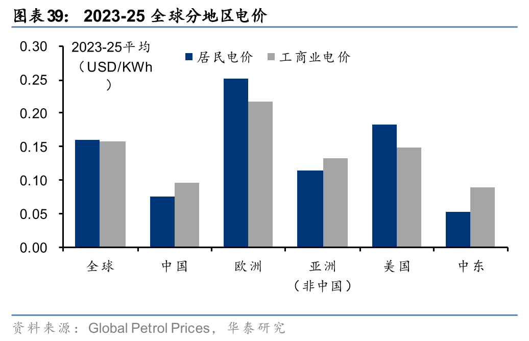 1. 绿电方面,截至2024年末中国风光累计装机超1400GW,占全球风光累计装机约50%,2025年末中国风光累计装机增至1850GW,同比增长32%,根据Global Petrol Prices数据,中国居民及工商业平均电价较美国及欧洲低30%-70%,叠加未来新能源 储能一体化模式铺开和绿电直连等政策,有望进一步带动绿电降本。
