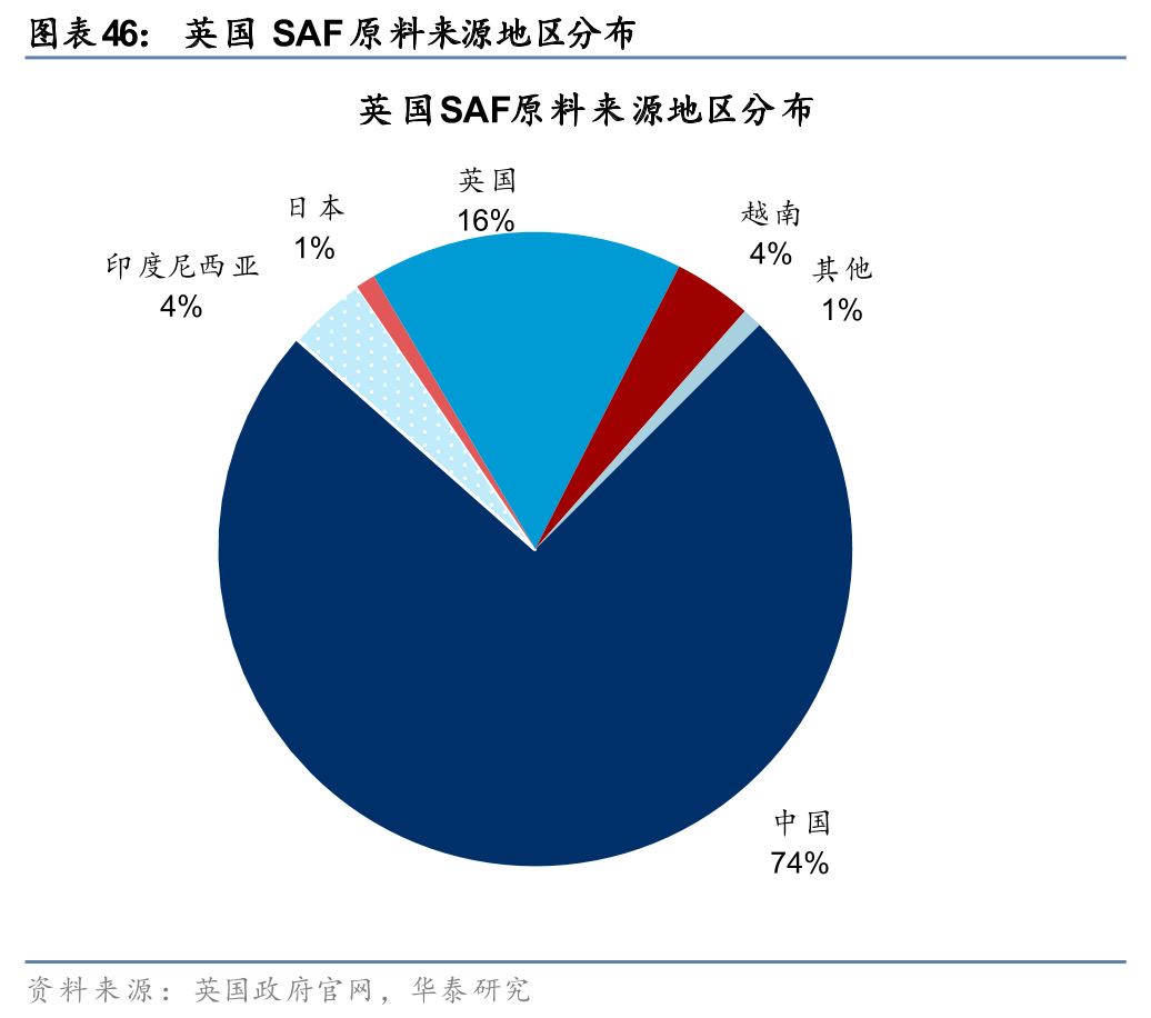 我们看到,全球范围内,航空业净零目标已然立法;分区域来看,历史上欧盟已通过EU ETS将航空业正式纳入碳排放监管体系,后续ReFuelEU Aviation法规进一步引入航空可持续燃料(SAF)强制掺混要求。中国、新加坡、韩国亦设立本国SAF掺混阶段性目标,航运业整体进入深度减排阶段。