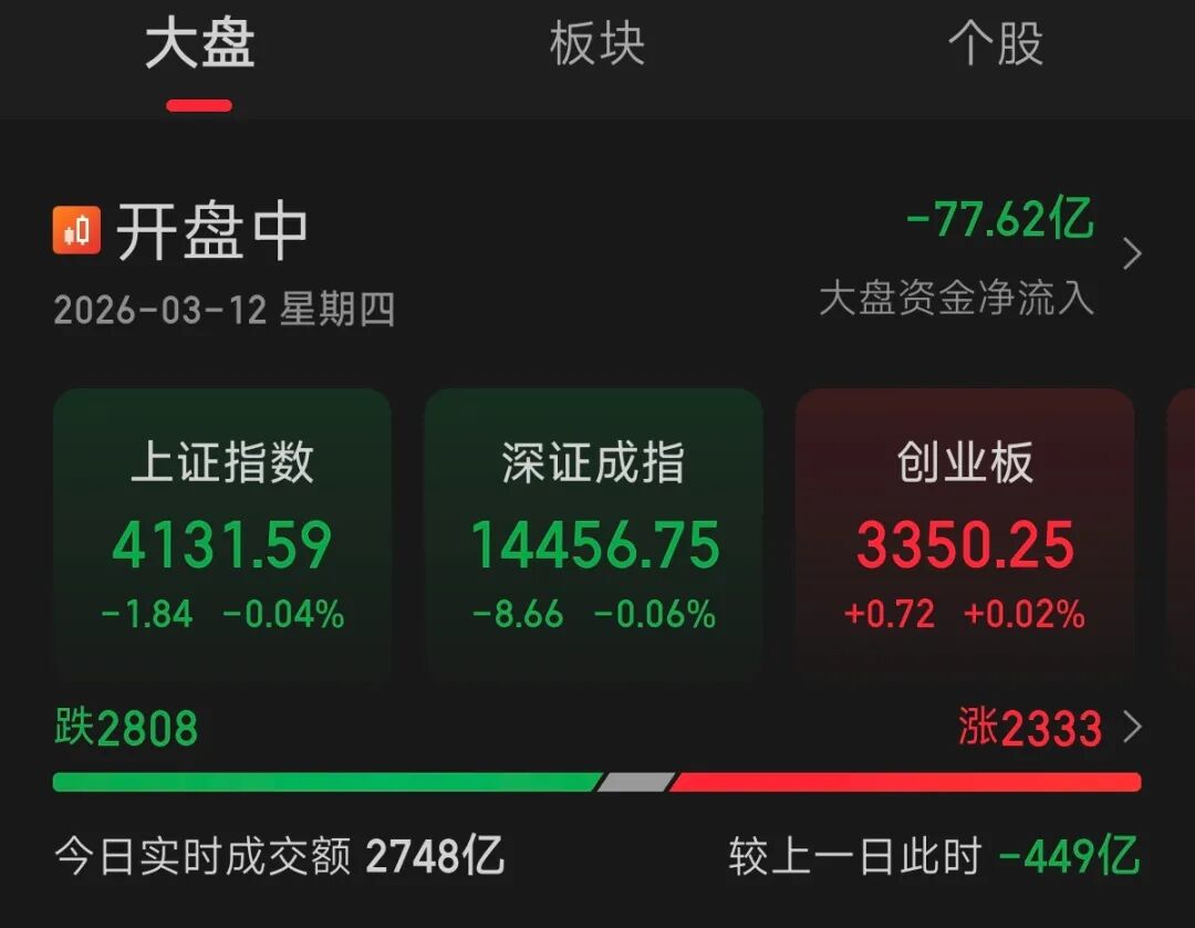 3月12日,三大指数开盘涨跌不一。盘面上,化学纤维、碳纤维概念走强,石墨电极、油气开采、煤炭、燃气、塑料制品等板块开盘活跃。