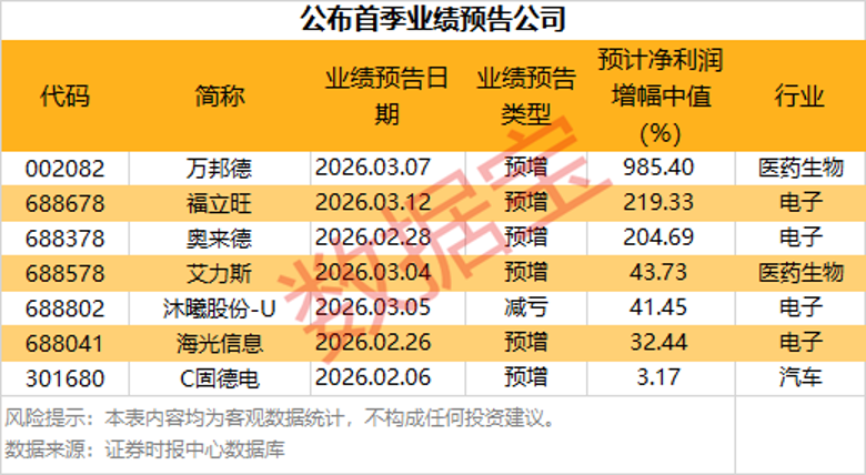 福立旺、奥莱德预计净利润增幅均超2倍,其中福立旺在昨日晚间发布一季度业绩预告后,今日早盘股价大涨,开盘涨超8%。