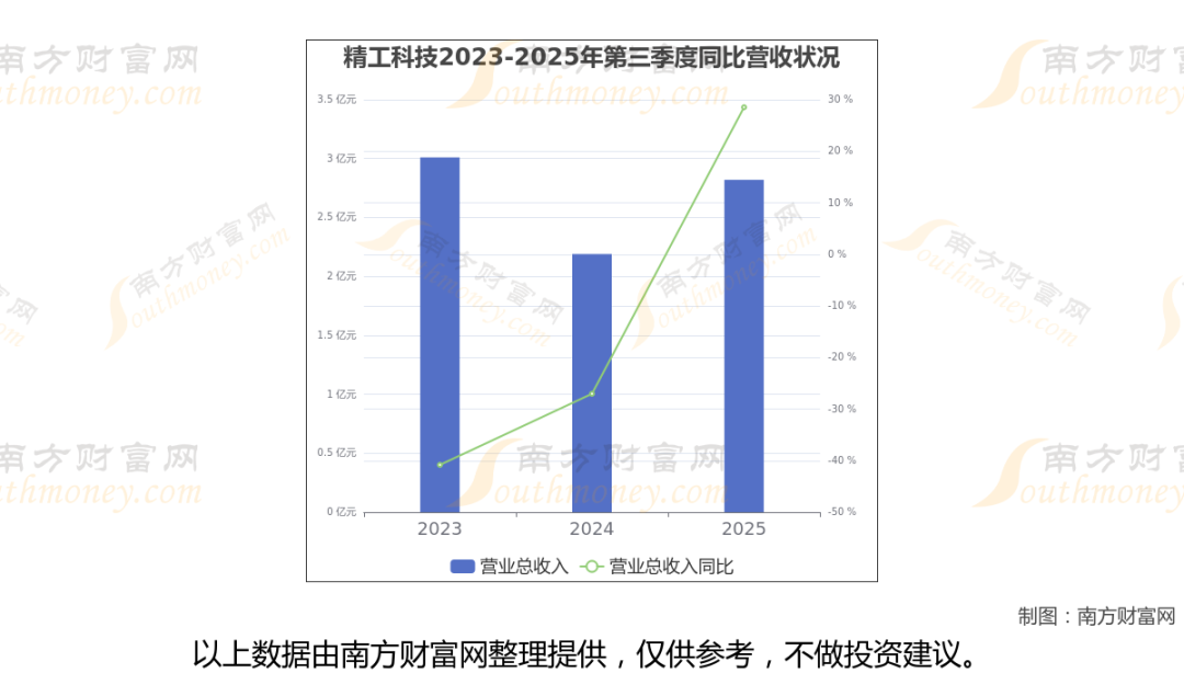 精工科技披露了2025年第三季度财报。报告显示(如上图),精工科技2025年第三季度实现营收2.82亿元,同比28.53%。