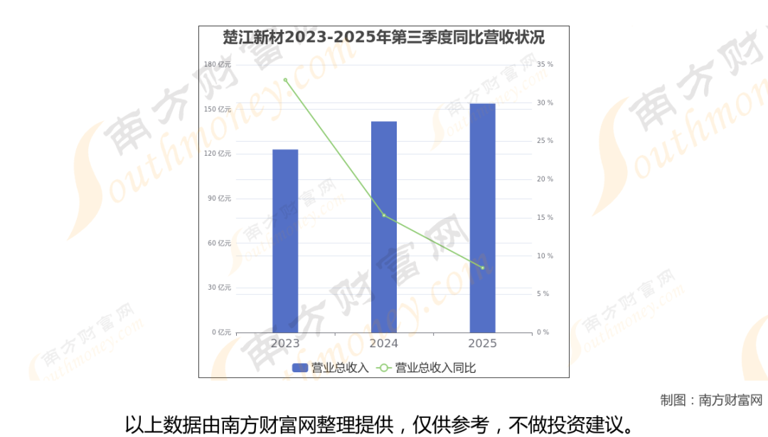 (如上图)楚江新材披露2025年第三季度报告,报告期实现营收153.88亿元,同比8.46%。