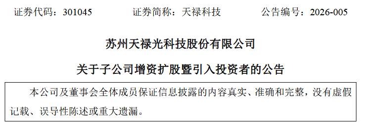 根据公告披露的交易细节,天禄科技于2026年1月7日与元禾原点及安徽吉光原有股东共同签署了《增资协议》。