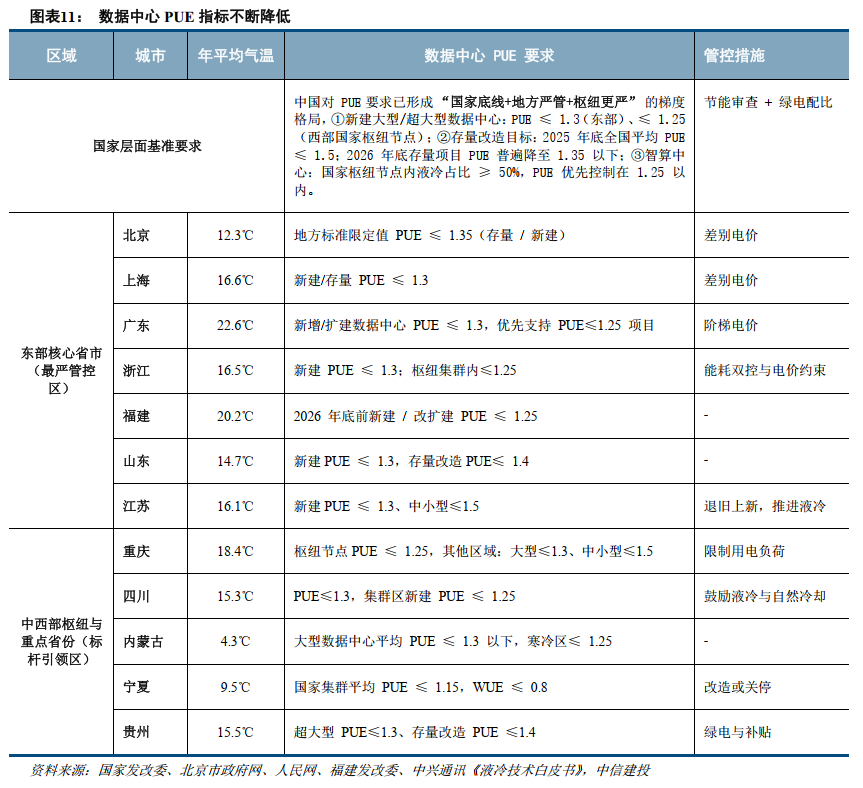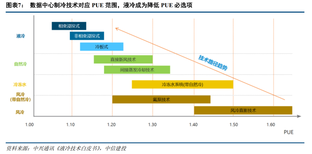 1.3 “双碳”背景下PUE要求持续收紧,液冷等散热新技术加速渗透