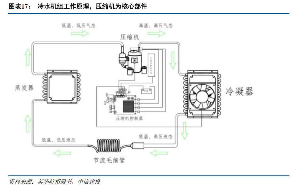 2、液冷一次侧散热重要性提升,冷水机组与压缩机成核心环节