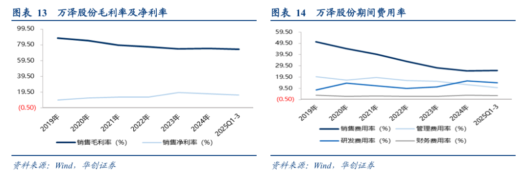 期间费用率:自2019年达到82.44%高点后,呈现明确的下降通道,至2024年已降至57.18%,2025年前三季度进一步优化至53.13%,充分彰显规模效应与费用管控成效。