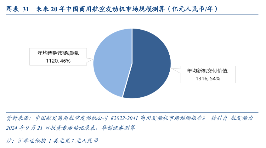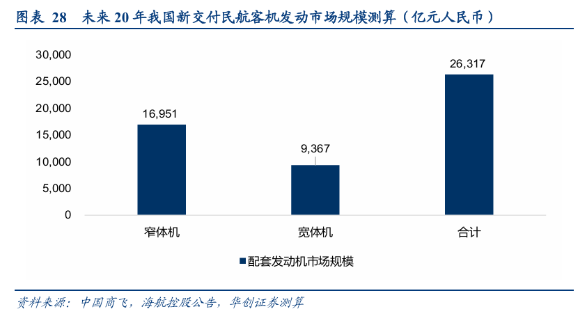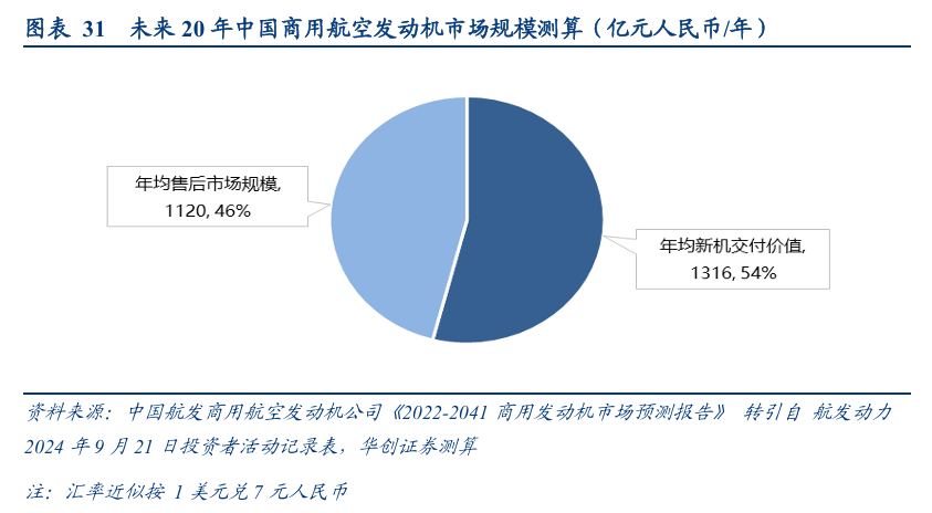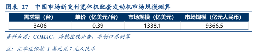 (一)我们预计未来20年我国商用航空发动机新交付市场规模或将超2.6万亿元;售后市场将进一步打开规模天花板,而热端部件是后市场更换重点;