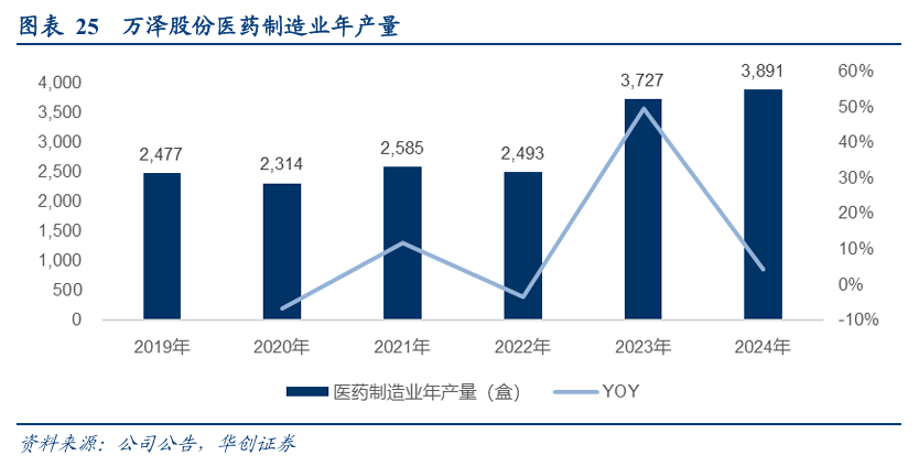 医药制造业以金双歧、定君生为核心,2019-2024年销量CAGR为8.8%,2023年突破3000万盒;