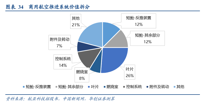 (二)叶片类是商用航空发动机价值占比最高的部分,达到26.3%