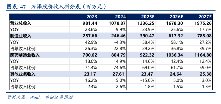 1)分行业看:医药制造业始终为公司第一大业务,2020年及之前该板块收入占比超90%,此后逐步下降,但仍为公司贡献70%以上的收入,2025H1收入占比为72.1%;近年制造业收入占比逐渐提升,从2019年的2.7%提升至2025年上半年的26.7%。