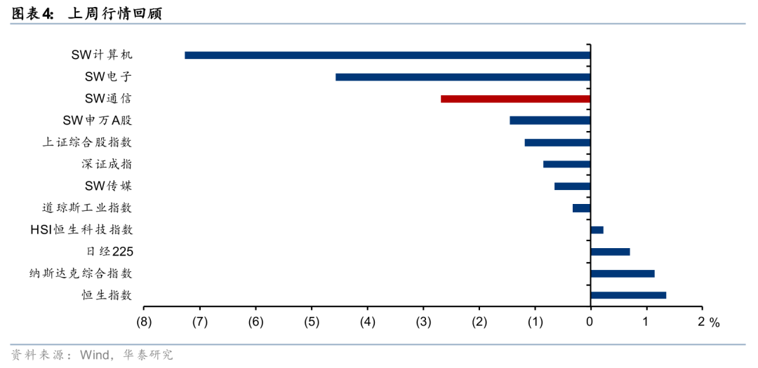 市场方面,上周通信(申万)指数下跌2.68%,同期上证综指下跌1.18%,深证成指下跌0.83%。我们观察到,谷歌正积极推动TPU外部部署, TPU是谷歌自主设计的专用AI加速器,第七代TPU Ironwood首次专为AI推理场景定制,具有极高算力峰值、SparseCore核心,以及整合协同TPU的Pathways系统。谷歌官方称Ironwood芯片间通信带宽需求达1.2TBps,或将推动1.6T光模块导入。在国内外AI产业持续推进背景下,我们持续看好AI算力链的发展机会。