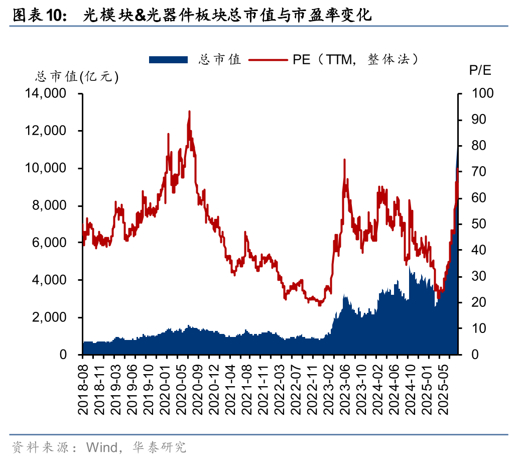 Ironwood集群拥有的超大带宽需求,有望加速1.6T光模块的需求导入。谷歌针对云客户的不同AI工作负载需求,为Ironwood提供256芯片与9216芯片两种规模配置,谷歌称Ironwood以9216片组成Pod时,总算力是全球最大超级计算机El Capitan的24倍以上,芯片间通信带宽需求达1.2TBps,传统800G光模块已无法满足分布式计算的低延迟需求,或将推动1.6T光模块需求加速导入。由于博通的半导体解决方案部门是谷歌TPU的外包合作伙伴,Omdia根据博通CEO今年的人工智能半导体营收目标预测谷歌的TPU今年至少为博通带来60亿美元的收入,这或将削弱英伟达GPU在AI领域的市场主导地位。