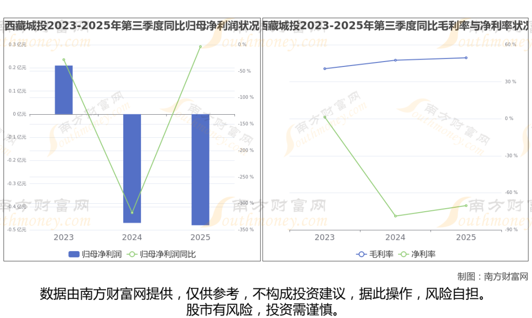 2025年第三季度季报显示,西藏城投公司毛利率49.43%,净利率-70.35%,归属净利润-4838.05万,同比增长-3.51%。