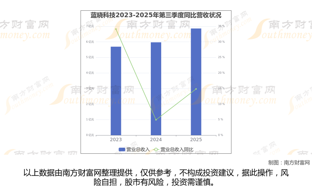 在2025年第三季度,蓝晓科技的业绩表现(如上图),主营业务收入达到6.86亿元,实现了14.86%的同比增长率。