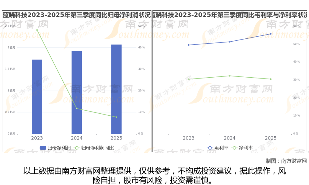 2025年第三季度季报显示,蓝晓科技公司实现净利润2.07亿,同比增长7.72%;毛利润为3.82亿,毛利率55.62%。