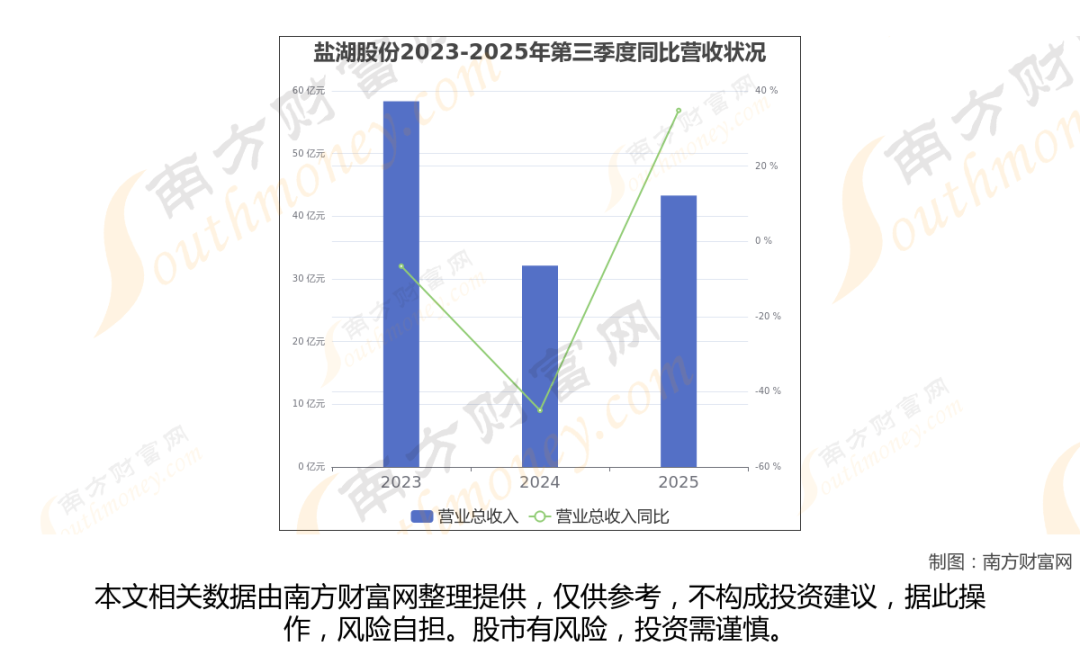 盐湖股份披露了2025年第三季度财报。报告显示(如上图),盐湖股份2025年第三季度实现营收43.3亿元,同比34.81%。