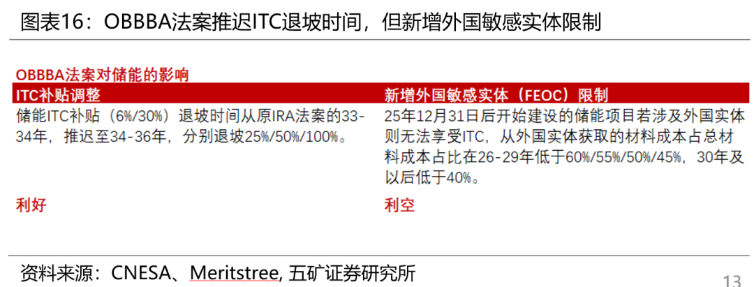 美国市场关税升级,OBBBA法案新增外国敏感实体限制,预计25年美国储能需求影响有限,但2026-2027年需求可能受到冲击。