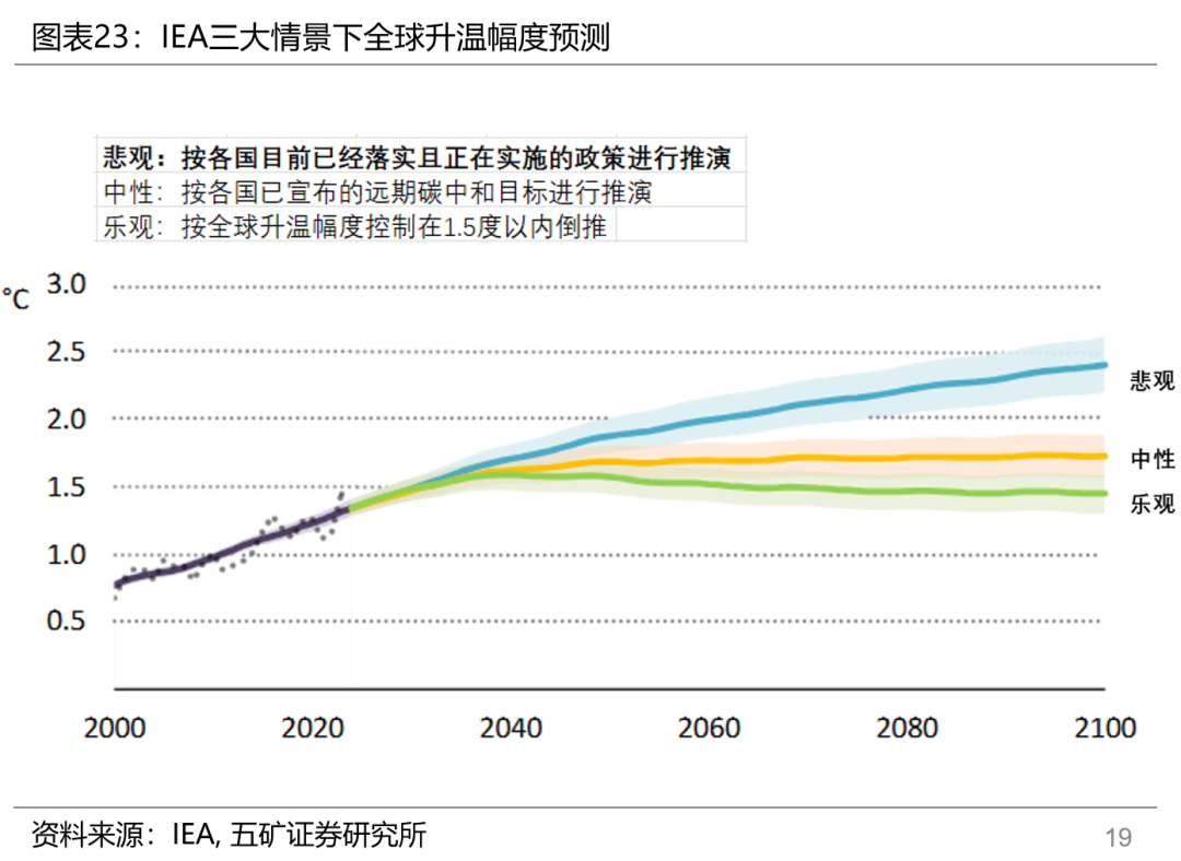 国际能源署(IEA)同样采用“多模型耦合 情景分析”框架,对未来全球能源转型之路作出预测和指引,乐观情景是基于巴黎协定1.5℃目标作出的预测。