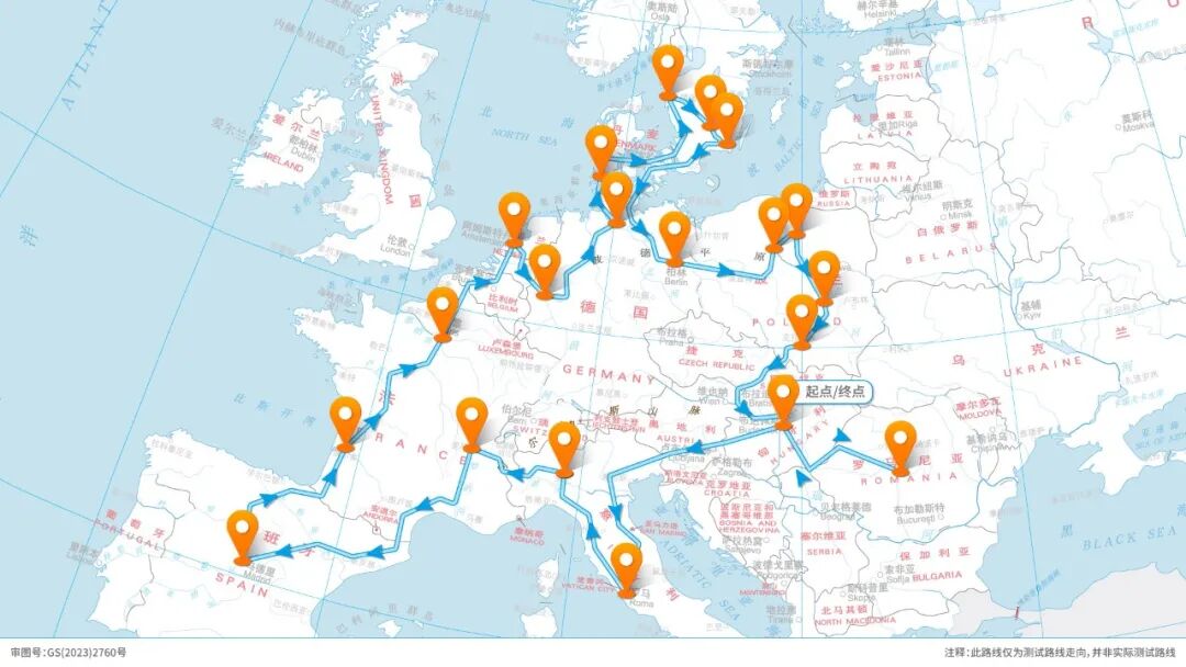 2025年9月,华测导航在欧洲进行了为期60天、跨越13国、总里程超过2万公里的大规模路测,实测数据显示:A720 PointX 方案在欧洲高速公路与城市道路场景中,平面精度优于20cm@CEP95,固定率最高达97.9%,充分验证了方案在欧洲复杂路况与法规环境下的稳定性和适应性。