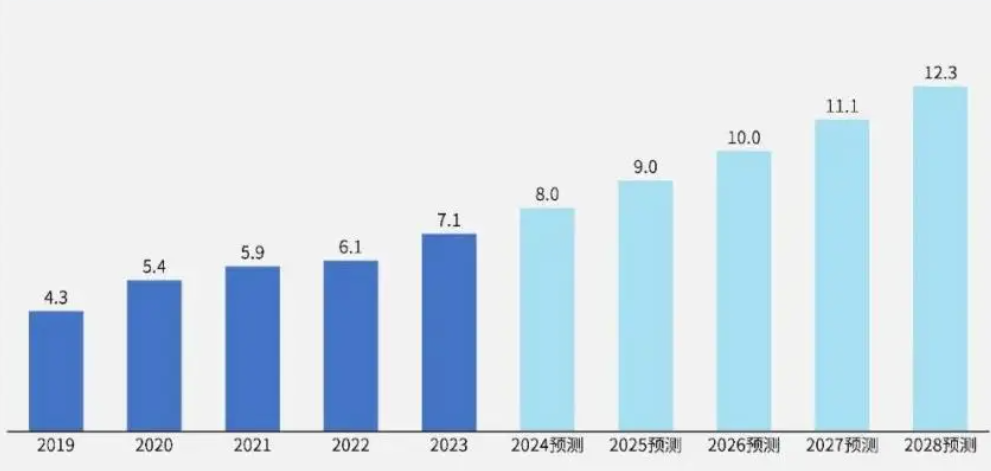 图4:中国银发经济市场规模(万亿人民币),2019-2028预测
