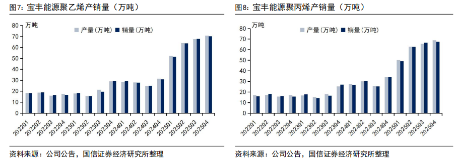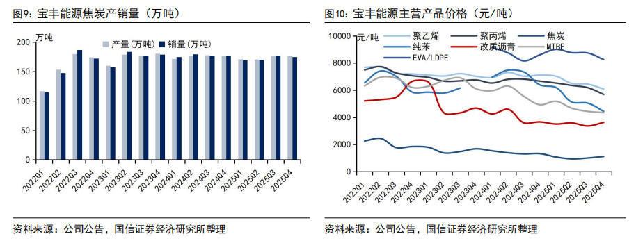 聚烯烃产能扩张贡献利润增量。2025年四季度公司聚乙烯/聚丙烯销量为70.35/67.55万吨(同比 127%/ 98%,环比 4%/ 1%),增量核心来自内蒙古煤基新材料项目全面投产。2025年聚烯烃行业迎来新产能投放高峰,国内供应能力显著增加;在国家提振消费、扩大内需政策推动下,需求增速较上年明显提升,但供给增速整体快于需求,供需环境相对宽松。受原油、煤炭等原材料价格下行及新产能释放影响,年内聚烯烃价格整体呈下行走势。四季度公司聚乙烯/聚丙烯不含税平均售价6083/5683元/吨(同比-14%/-15%,环比-6%/-8%)。公司聚烯烃产能扩张持续,宁东四期烯烃2025年4月已开工建设,计划于2026年底建成投产;新疆烯烃项目、内蒙二期烯烃项目前期工作正在积极推进。