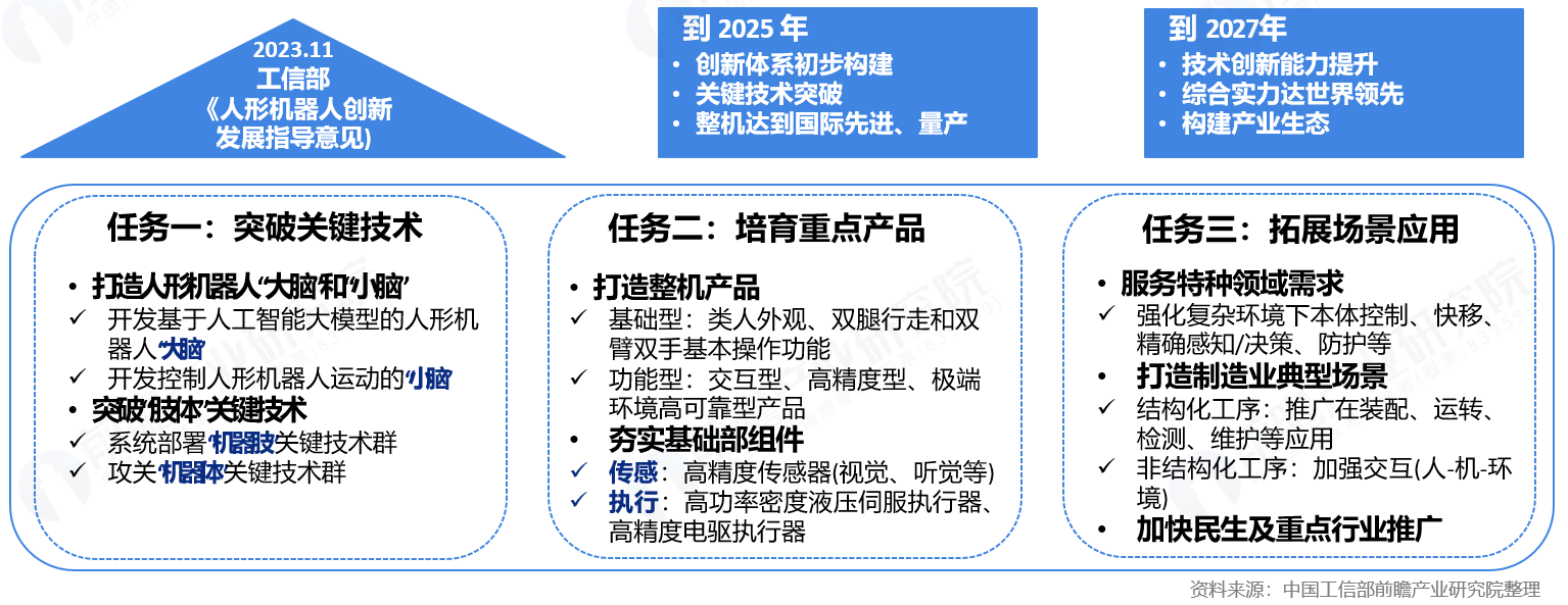 2023年11月《人形机器人创新发展指导意见》发布,该政策推出的目的为推动人形机器人产业高质量发展,培育形成新质生产力。人形机器人作为集成人工智能、高端制造、新材料等先进技术的新质生产力载体,将对社会产业变革和全球竞争格局产生颠覆性影响。