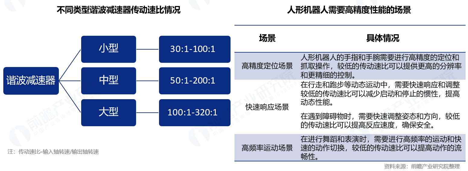 技术挑战二:谐波减速器传动速比受限使精度与响应速度下降谐波减速器的传动速比决定人形机器人运动的精度和响应速度,谐波减速器的传动速比通常在30:1~320:1之间,不能用于传动速比小于30的场合,将会限制人形机器人在高精度定位、快速响应等方面的表现,导致运动精度下降、响应速度变慢。
