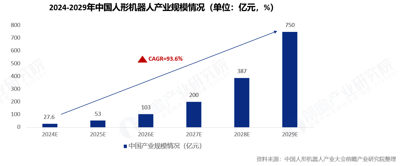 中国人形机器人2024年-20229年年复合增速将达93.6%