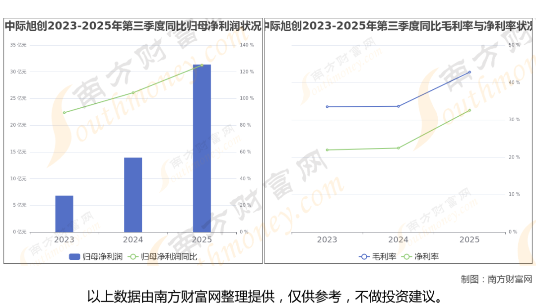 2025年第三季度季报显示,中际旭创公司实现净利润31.37亿,同比上年增长率为124.98%,毛利率42.79%,归属净利润31.37亿,同比增长124.98%。