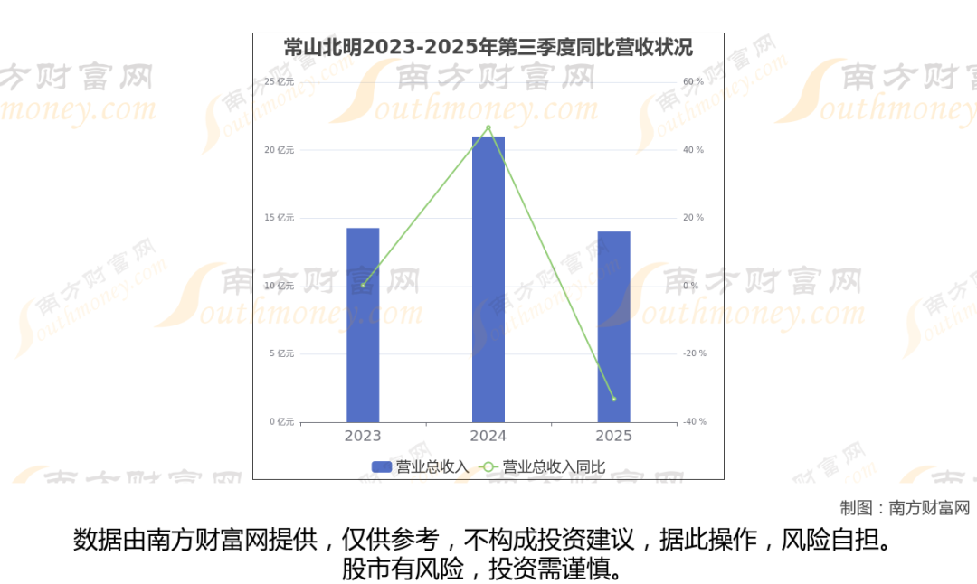 常山北明披露了2025年第三季度财报。报告显示(如上图),常山北明2025年第三季度实现营收14.03亿元,同比-33.2%。