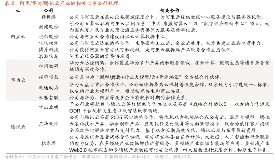 垂直应用合作伙伴:软通动力、赛意信息、东方国信、常山北明、格灵深瞳、云从科技、云天励飞、海量数据、润和软件、智洋创新。其他:中科曙光、中国长城
