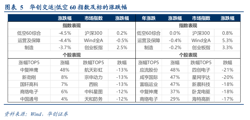 三、华创交运|低空60指数:本周下跌4.5%,全年上涨0%