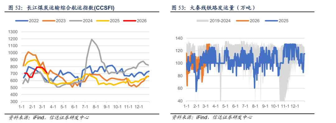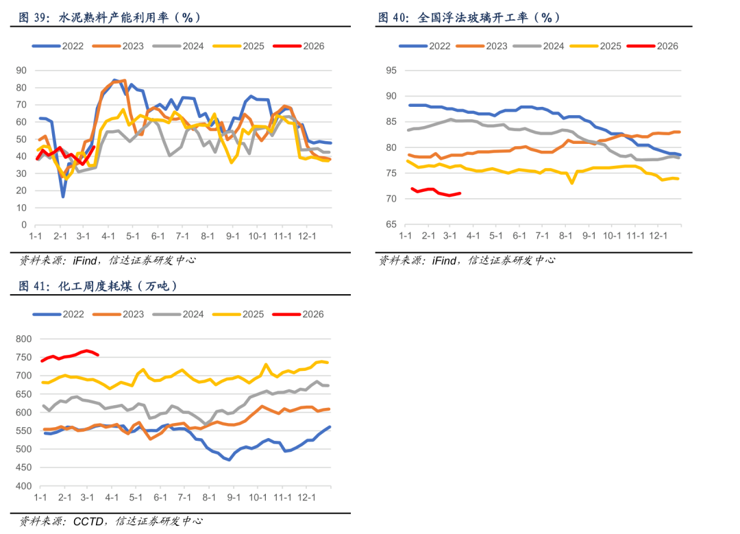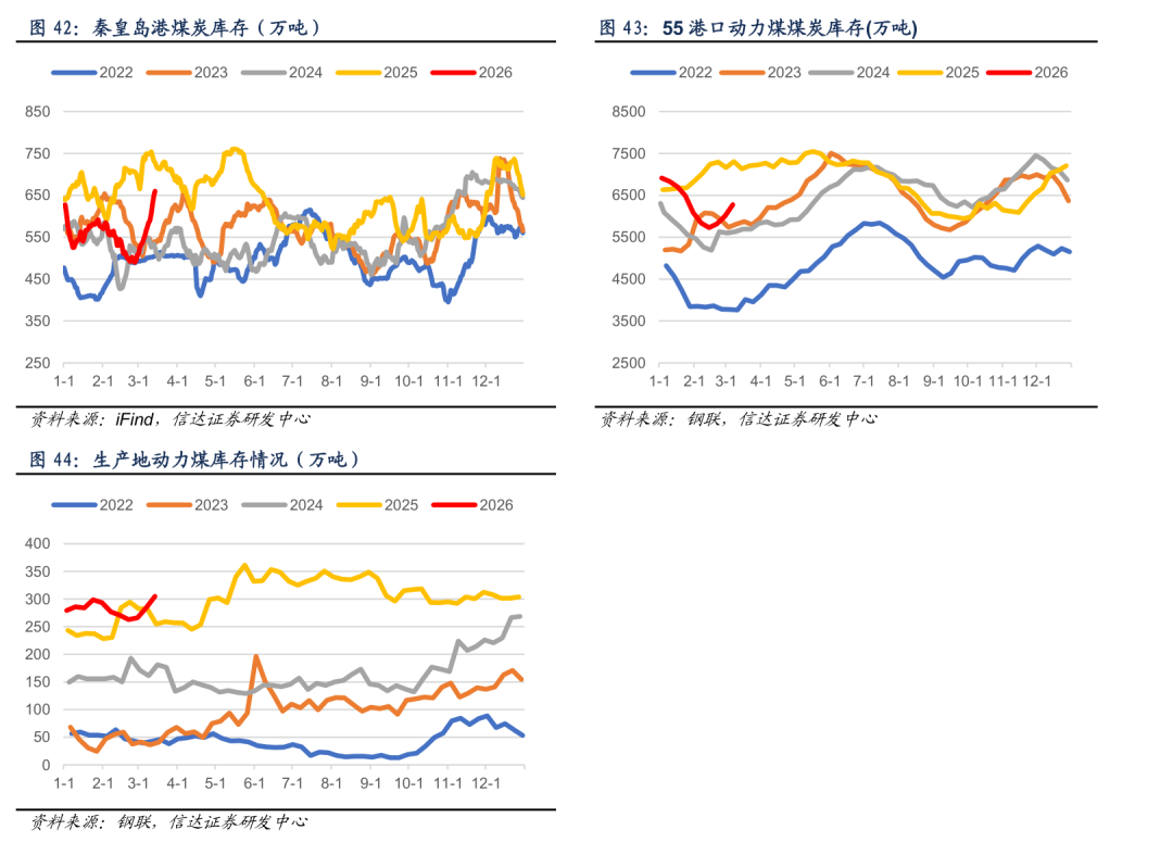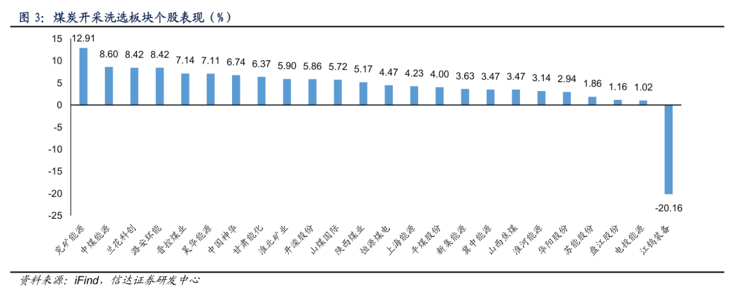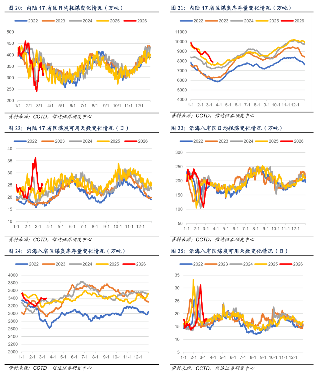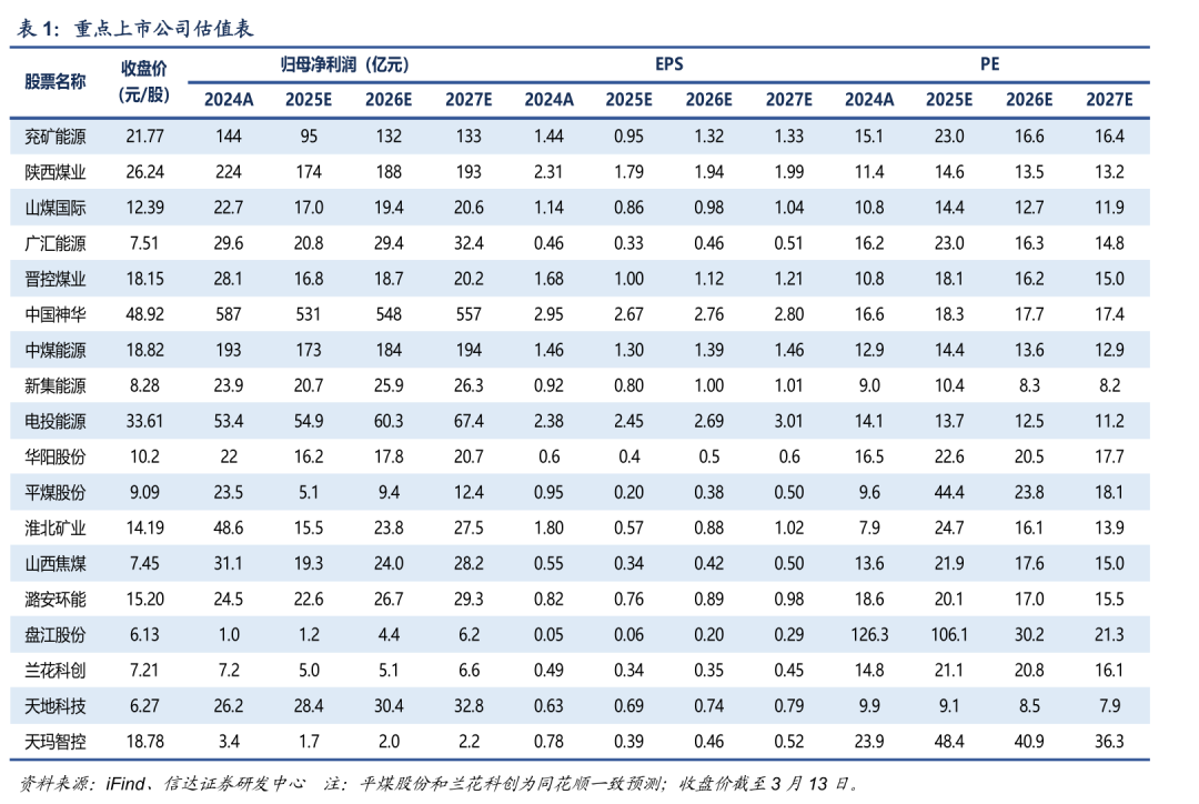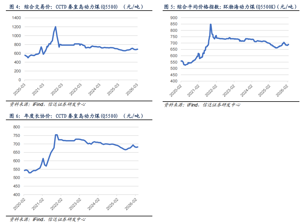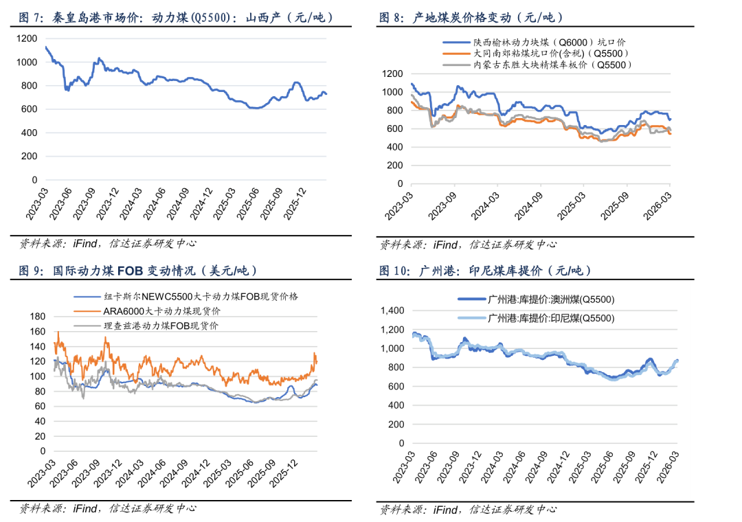 我们认为,当前正处在煤炭经济新一轮周期上行的初期,基本面、政策面共振,现阶段逢低配置煤炭板块正当时。本周基本面变化:供给方面,本周样本动力煤矿井产能利用率为90.6%( 1.8个百分点),样本炼焦煤矿井产能利用率为87.16%( 4.84个百分点)。需求方面,内陆17省日耗周环比下降54.40万吨/日(-14.88%),沿海8省日耗周环比下降16.00万吨/日(-7.82%)。非电需求方面,化工耗煤周环比下降7.72万吨/日(-1.01%);钢铁高炉开工率为78.34%( 0.63个百分点);水泥熟料产能利用率为45.55%( 5.72个百分点)。价格方面,本周秦港Q5500煤价收报731元/吨(-14元/吨);京唐港主焦煤价格收报1590元/吨(-20元/吨)。值得注意的是,美以与伊朗的地缘政治冲突引发国际油气及化工品价格快速攀升,受能源价格联动效应影响,叠加印尼煤炭配额及出口政策调整,国际煤价随之上涨。此事件推动能源安全与能源价格通胀议题受到资本市场高度关注,带动能源板块整体走强。展望短期煤炭市场,随着电煤消费淡季临近及产地供应恢复,北方港口库存持续累积,国内煤炭市场下行预期有所升温。但我们判断煤价下行空间有限,主要支撑因素包括:一是地缘冲突推高国际能源价格,煤炭替代需求增加,且高油价有望提振国内煤化工用煤需求;二是进口煤成本偏高,对国内煤价形成支撑。综合来看,4-5月淡季煤价虽存调整压力,但回调幅度或相对有限,全年煤价中枢或显著抬升;同时,化工品价格上涨与煤炭成本优势更利好煤化工资产。自1月25日我们周报提示煤化工资产的配置机会,彼时更多是化工资产普涨下带来的估值修复。而此时,伴随伊朗地缘政治冲突的持续扰动,能源安全与供需错配均加速煤油气化工资产的重估。鉴于此,我们持续看好煤炭板块,尤其是拥有优质煤化工资产的标的。需注意的是,板块阶段性涨幅具有明显的情绪溢价,切勿过度追高,但后续情绪缓和带来调整后,依旧是较好的配置机会。煤炭配置核心观点:当下,我们信达能源团队一直提出的煤炭产能短缺的底层投资逻辑未变(短期供需基本平衡,中长期仍存缺口)、煤价底部确立并中枢站上新平台的趋势未变、优质煤企高盈利&高现金流&高ROE&高分红的核心资产属性未变、煤炭资产相对低估且估值整体性仍有望提升的判断未变,以及公募基金煤炭持仓处于低配状态。基于此,煤炭板块配置策略不可忽视红利特性,又要把握顺周期弹性。即,煤炭板块向下回调有高股息边际支撑,向上弹性有后续煤价上涨预期催化。特别强调的是,在全球货币趋宽松、美元信用趋弱、AI产业带来投资新需求、矿产资源供给刚性、以及全球能源安全优先级抬升和矿产资源保护主义等多重扰动下,矿产资源等大宗商品有望迎来上涨周期,同时煤炭作为我国能源安全压舱石与核心硬资产,其矿产资源价值或被重新定价,叠加资本市场流动性溢价,煤炭传统周期估值逻辑有望被打破,进而迎来估值中枢系统性上移与重估。鉴于此,我们仍坚定看多煤炭板块,建议逢低布局。总体上,能源大通胀背景下,我们认为未来3-5年煤炭供需偏紧的格局仍未改变,优质煤炭企业依然具有高壁垒、高现金、高分红、高股息的属性,叠加煤价筑底推动板块估值重塑,板块投资攻守兼备且具有高性价比,短期板块回调后已凸显出较高的投资价值,再度建议重点关注现阶段煤炭的配置机遇。
