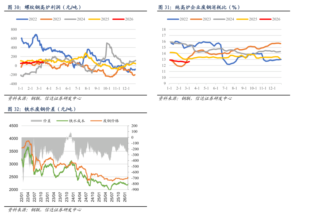 铁废价差:截至3月12日,铁水废钢价差为-268.6元/吨,周环比增加3.7元/吨。
