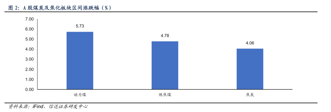 本周动力煤板块上涨5.73%,炼焦煤板块上涨4.78%,焦炭板块上涨4.06%。