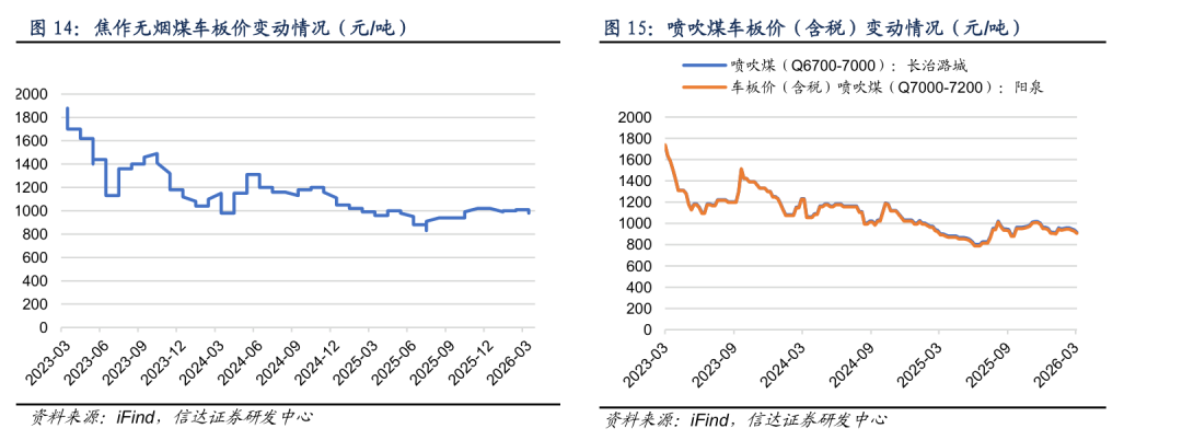 截至3月13日,焦作无烟煤车板价980.0元/吨,周环比持平。