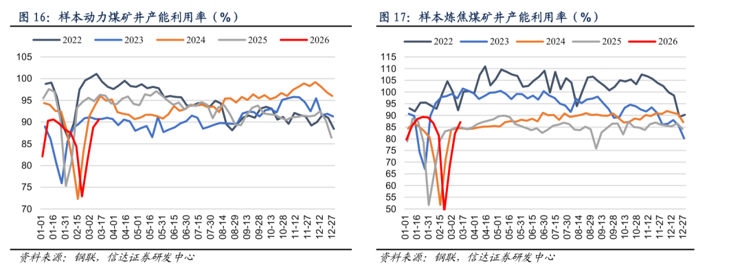 截至3月13日,样本炼焦煤矿井开工率为87.16%,周环比增加4.8个百分点。