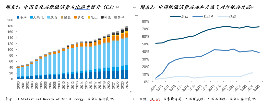 1.1 降低能源对外依存度,非电能源降碳迫切度提升