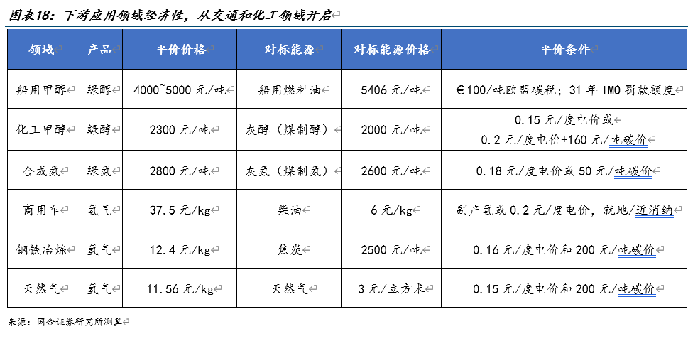 2.1 氢气下游应用领域平价,从交通、航运和化工领域开启