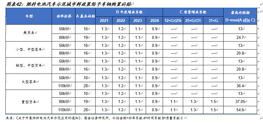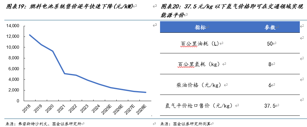 燃料电池售价与性能是燃料电池汽车购置的关键。燃料电池示范城市群的补贴与氢能中长期规划对氢车在交通领域的定位表明,燃料电池在交通领域未来要实现价格逼近或低于内燃机价格,同时其稳定性与可靠性需与内燃机持平,补贴尾声中,性能与成本是燃料电池行业的核心。