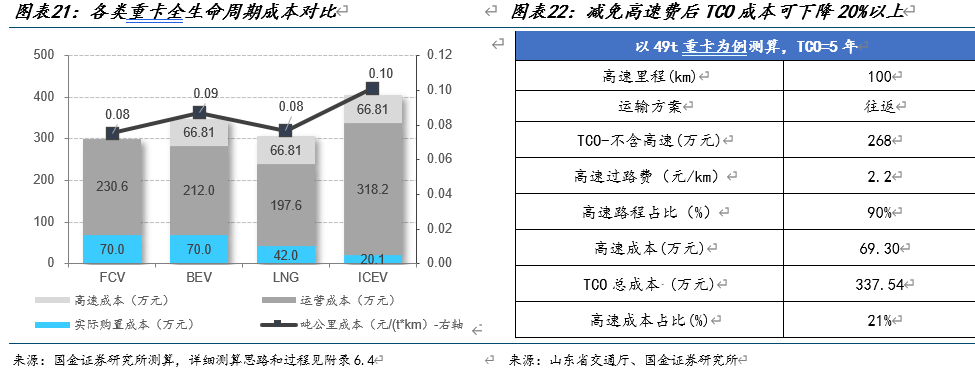 叠加高速过路费政策扶持,减免20%的全生命周期成本(TCO)费用,经济性进一步显现。多个省市发布减免高速过路费政策,加速运营成本下行。跨地区氢高速项目叠加各地氢高速过路费减免政策,氢高速成为氢车规模化示范推广和具备运营经济性的关键应用场景。