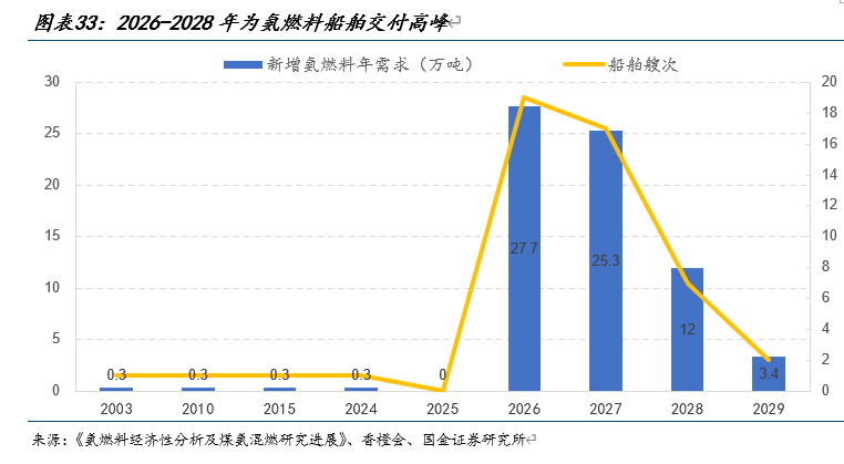 船舶领域,绿氨燃料应用正在加速。截至2025年底,全球已布局氨燃料船舶49艘,对应合成氨燃料需求约63万吨,预计2026年将交付19艘。这一实际需求已经形成,如全球氨燃料船舶订单量最大的航运公司CMB.Tech已于2025年12月与中国能建旗下氢能公司签约,采购15.8万吨绿氨,预计将于2026年1月投产。CMB.Tech目前已订造13艘氨燃料船舶,总载重吨约217万吨,其中多艘计划于2026年投入运营。