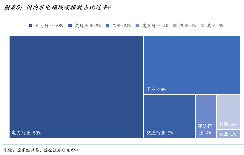 中国能源资源为“富煤、缺油、少气”,化石能源对外依存度高。《中国的能源转型》白皮书表示:推动主体能源从化石能源向非化石能源更替,这是破解资源环境约束、实现碳达峰碳中和目标的迫切需要。电力领域通过采用光伏、风电、水电、核电等可再生能源发电方式,正在积极推进去煤化;石油的应用也通过汽车电动化实现了部分替代。但由于国内缺油、少气,油气对外依存度仍然偏高,分别接近50%和60%。
