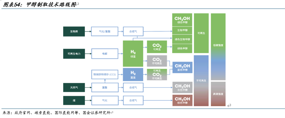 长期逻辑看降本速度提高绿醇在船舶和化工领域应用渗透率,电制甲醇将成为未来主流发展方向。短期示范阶段,由于渗透率低,船东对绿色甲醇价格并不敏感,因而主要矛盾是供给的有无。但长期来看,绿醇的应用渗透率将逐步提升,此时对于船东和化工厂商而言,最重要的是经济性,因而绿色甲醇的降本尤为关键。