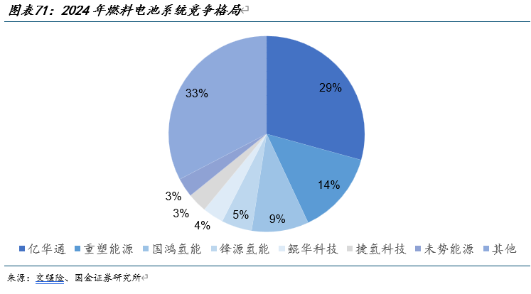 燃料电池降价迅速,补贴依赖度大幅下行。燃料电池系统价格从2023年的3900/kW降至低于3000元/kW,氢车购置成本实现大幅下行,对补贴依赖度降低,行业向市场化迈进。
