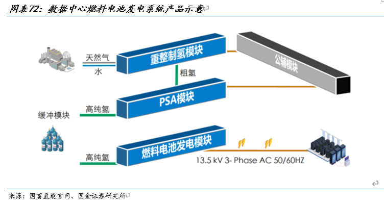 应用市场再拓展,燃料电池在固定式发电领域也可应用。天然气重整 纯化装置 质子交换膜燃料电池,相当于一套采用天然气作为燃料的发电系统,拥有成熟度高、降本空间大、常温发电、调节能力强等优势。